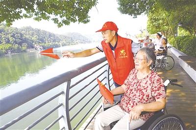 7日,邵武市水北街道志愿者一早就來到轄區內的市愛心老年公寓,開展“助老觀景,歡樂重陽” 公益活動,讓老人們感覺到社會的溫暖。(黃自棋 攝)