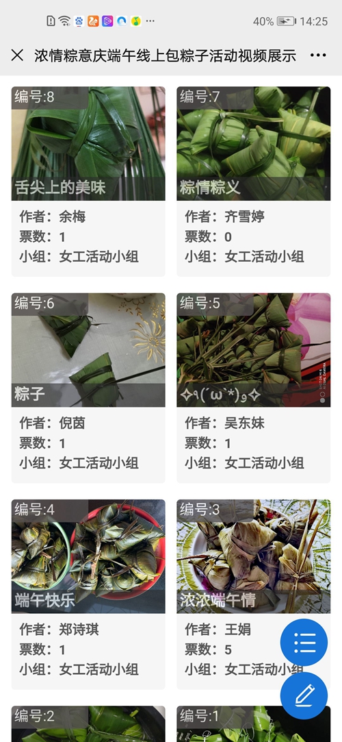 線上展示 中國(guó)電信南平分公司供圖 在端午佳節(jié)即將到來(lái)之際,為弘揚(yáng)傳統(tǒng)文化、共度傳統(tǒng)節(jié)日,中國(guó)電信南平分公司女工委積極組織開展“粽情一夏”端午節(jié)線上包粽子活動(dòng)。 本次活動(dòng)在線上征詢、充分收集全體女工活動(dòng)建議的基礎(chǔ)上,由女工委統(tǒng)一采購(gòu)新鮮的食材,送到每一位女工手里。周末時(shí)間,女工們?cè)诩依铮ㄟ^職工之家平臺(tái)和女工微信群,開展線上實(shí)時(shí)交流和展示。雖然大家沒有聚在一起,但網(wǎng)絡(luò)架起了互相學(xué)習(xí)分享的橋梁,女工們巧手翻飛,拌餡剁料、清洗粽葉、填糯米、扎粽繩……很快就將各種龍舟粽、三角粽等照片上傳小組群內(nèi)和職工之家平臺(tái)。 透過一張張照片和群內(nèi)熱情洋溢的討論,每位女工都感受到傳統(tǒng)節(jié)日的熱鬧、勞動(dòng)的喜悅,以及女工團(tuán)體和諧的氛圍。大家紛紛表示,自己親手制作的粽子不僅健康美味,還承載了集體的溫暖幸福。小小粽子,包進(jìn)了中國(guó)電信南平分公司黨委、市電信工會(huì)對(duì)每一位女工的關(guān)心與愛護(hù),女工們紛紛表示將更積極地投入本職工作,努力為企業(yè)圓滿完成全年生產(chǎn)經(jīng)營(yíng)任務(wù)貢獻(xiàn)自己的一份力量。(中國(guó)電信南平分公司 原潔琳) |