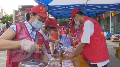 政和縣老年志愿者制作涼茶 過(guò)去15年間,每逢盛夏,政和縣老年志愿者協(xié)會(huì)的志愿者們都會(huì)走上街頭,身穿紅馬甲為市民免費(fèi)供應(yīng)涼茶,用自己的辛勤付出,為市民撐起“清涼保護(hù)傘”。 近日,走進(jìn)位于南門路段的涼茶熬制點(diǎn),筆者看到老年志愿者們分工協(xié)作,有的熬制涼茶,有的搭配藥材,有的生火,一個(gè)個(gè)環(huán)節(jié)井然有序。老年志愿者協(xié)會(huì)的楊浩明告訴筆者,制作涼茶的中草藥都是每年春季發(fā)動(dòng)志愿者們到田間山頭采摘和到市場(chǎng)上購(gòu)買來(lái)的。采摘、購(gòu)買來(lái)的中草藥經(jīng)沖洗、晾曬后放入倉(cāng)庫(kù)備用。“我們草藥的藥性一般就是消炎解毒清熱,喝了這個(gè)茶以后可以去濕,可以降溫,對(duì)夏季防暑降溫有很好的療效。” 政和縣老年志愿者協(xié)會(huì)前會(huì)長(zhǎng)楊浩明介紹說(shuō)。