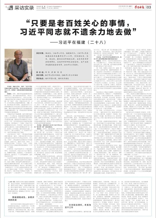 采訪對象:楊益生,1948年6月生,福建福州人。1987年4月在福建省政府發展研究中心工作,歷任副處長、處長、副主任,兼任省社科聯副主席、省自然資源學會副理事長、省城市科學研究會副會長、省產業經濟發展促進會會長等。2008年10月退休。 采 訪 組:邱 然 黃 珊 陳 思 采訪日期:2017年6月8日初訪,2020年1月11日核訪 采訪地點:福州市芳沁園,福州悅華酒店 采訪組:楊益生同志,您好!習近平同志任福州市委書記的時候,您在省政府發展研究中心工作,請您講一講他制定福州發展戰略的情況。 楊益生:好的。我的單位是福建省政府發展研究中心,屬于政府的參謀單位。1992年,習近平同志任福州市委書記。之所以認識他,主要是因為他當時主持制定了福州市的發展戰略,即“3820”工程,對福州未來3年、8年、20年經濟社會發展的戰略目標、步驟、布局、重點等進行科學謀劃。這是福州市為了全面貫徹落實鄧小平同志南方談話和黨的十四大精神,落實省委省政府制定的《加快福建經濟發展的戰略設想》,進一步加快改革開放和現代化建設步伐而制定的。 為制定好這個發展戰略,福州市委市政府召集了一個大型會議,福建省政府發展研究中心在會上有兩次發言。習近平同志對我們的發言比較感興趣,就把我們叫到他的辦公室去,問3年、8年、20年的經濟社會發展目標具體該如何定。我們提出了一個建議,就是3年大變樣跟福州自己比;8年的話,我們應該與周邊的省會城市比,比如與離得較近的廣州、南昌、杭州比;20年的話,福州在經濟總量、人均水平上,要與臺灣相比,與“亞洲四小龍”比。習近平同志很認可這個建議。 習近平同志對“3820”工程指標的準確度要求很高。最后,實踐也證明當年目標定得是相當具有科學性和遠見性的。可以說,“3820”工程是福州這座城市20年發展的藍圖。直到今天,福州人民對“3820”工程仍然記憶猶新。不可否認,“3820”工程也是習近平同志主政福州期間很重要的一個開局、一個基礎。 20多年前,習近平同志作為一個地方城市領導,不急功近利,而是立足于這個城市長遠、戰略性的發展,從善如流,廣泛聽取各方面的意見,提出這么一個大的發展框架,是具有遠見卓識的。 習近平同志還提出要把福州建成國際化大都市。在當時,這種提法是相當具有前瞻性的,沒有人敢提,特別是研究城市建設的人。我也曾長期研究城市經濟,私下與建設廳研究城市建設的同事談起這一提法時,他們都說:“將福州這么一個小省會建設成國際化大都市,這個提法太冒進、不可行。”但現在回頭想,我認為:習近平同志當時提這個設想,不是說讓福州“一口吃成胖子”,一步到位就從一個小省會建成國際大都市,而是將它作為一個長遠的城市發展目標提出來。“國際化大都市”這個提法,應該是福州今后的發展方向。盡管福州現在還沒發展成為國際化大都市,但是離實現這一目標越來越近了。比如,福州舉辦了金磚國家政黨、智庫和民間社會組織論壇,還將承辦世界遺產大會,這些都表明福州正一步一步走向這個目標。 另外,福州要想立足兩岸的話,就必須要與臺北作比較,雖然現在與臺北相比還差一點,但在“一帶一路”倡議帶動下,福州今后的影響力肯定要超過臺北。因為,福州的背后是偌大的中國大陸,這就好比當初的廈門與高雄,當時高雄作為世界航運中心,是一個大港,而廈門比它要小得多,但現在兩岸的航運中心已經開始從高雄轉移到廈門了,廈門已然超過高雄了。20多年,可以改變很多事情的。同樣,福建與臺灣的差距,經過20年,已經大大縮小了。我認為,廈門、福州乃至福建這些年的快速穩健發展,都得益于當年習近平同志非常有遠見的戰略發展規劃。 采訪組:請您講講1994年習近平同志支持“閩江第一漂”活動的情況。 楊益生:1994年,我們福建有一批年輕的文化人,發起了一次具有創新意義的活動,叫做“閩江第一漂”。這個活動,一開始完全是民間組織的體育探險和漂流活動。當時有個很有名的長江第一漂,在一次活動中,有個人在漂到三峽的時候遇難了,這在全國都很震驚。在這種情況下,組織方覺得這個活動太民間化了不行,沒有強有力的保障。所以,他們就找到我,認為我們單位是研究單位,又跟省政府有工作方面的聯系,他們就想把我們單位拉進來。拉進來之后,因為我當時是省政府發展研究中心處長、主任助理,是這些參與者當中職位最高的,就讓我當了這個活動組委會的主任。我開始對這一活動也不太懂,就這樣被他們稀里糊涂“綁架”了。 我之前沒有組織過這樣的活動,這些活動跟我們的工作性質也不同,我心里沒數,就請示了有關領導。一些領導同志覺得這個活動可以支持,甚至還有兩個副省長為這個活動題了字。他們找到我時,就說:“你看,領導也很支持。”就這樣,我心里還是很擔心。但既然上了“套”,就沒辦法,只好硬著頭皮參加了。 習近平同志當時是福州市委書記。一位同事就對我說:“你趕快去找一下習書記,要爭取他的支持。這個活動要是沒有官方支持,一是沒有經費,二是這么多參加者沿途漂下來,安全問題得不到保障。”后來,習近平同志詳細了解這次活動的情況,就給我講:“這個活動很好,一是可以向自然挑戰,二是可以通過這個活動,把閩江流域這條‘母親河’的人文、地理、歷史都了解一下。這是一個文化考察活動,通過系統了解,以后還可以拍