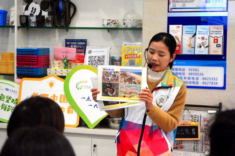 垃圾分類公益課 錢巧玲 攝 撿拾環(huán)保活動(dòng)結(jié)束后,在興業(yè)銀行南平創(chuàng)世紀(jì)社區(qū)支行的環(huán)保服務(wù)站,開展“垃圾分類”公益講座,南平市環(huán)保志愿者協(xié)會(huì)志愿服務(wù)講師謝彩銀,和志愿者們一同分享關(guān)于“垃圾分類”的相關(guān)知識(shí),通過結(jié)合有趣的垃圾分類互動(dòng)小游戲,有效提升大家環(huán)保意識(shí)和對(duì)生態(tài)可持續(xù)發(fā)展的重要認(rèn)識(shí)。 |
