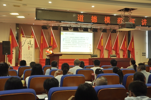 武夷煙葉開展道德模范巡講活動 9月17日下午,武夷煙葉在公司五樓會議室開展道德模范巡講活動,活動邀請了南平市第二屆“助人為樂”道德模范、2011年度“中國好人”、福建省2015—2017年度省級文明家庭獲得者伍夏云女士為員工巡講。 活動現(xiàn)場 ,伍夏云女士用樸實的話語,向員工講述了自己從1986年幫助15歲失足少年,開始了行善之路的一樁樁、一件件感人故事。對于伍夏云來說,她已經(jīng)記不清做了多少好事、幫助了多少人。伍夏云說“做一件好事不難,難的是一輩子做好事,但只要堅持做好事、做善人,就一定會發(fā)現(xiàn)自己的價值和人生的意義。” 伍夏云的講話獲得了現(xiàn)場員工的陣陣掌聲。大家聆聽了伍夏云女士的故事后,紛紛表示巡講活動使大家倍受教育和啟發(fā),也近距離感受到了道德模范的獨特人格魅力,要向道德模范學(xué)習(xí),傳播正能量。此次活動在公司內(nèi)營造了崇尚道德模范,學(xué)習(xí)道德模范,爭做道德模范的熱潮。 本次活動由福建武夷煙葉有限公司、邵武市煙草專賣局(分公司)、南平煙草物流有限公司聯(lián)合舉辦。(楊紅梅) |