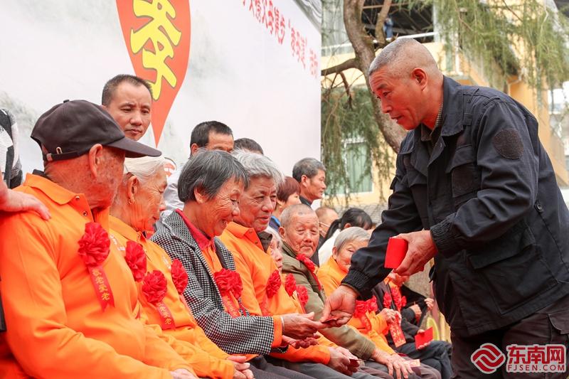 10月25日(農(nóng)歷9月初9)在武夷山市興田鎮(zhèn)西郊村“朱子孝道”文化節(jié)上村上愛(ài)心人曹祖繁給老人發(fā)紅包。 |