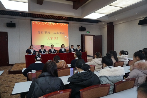 厲行節儉 從我做起 黃冬華 攝 為進一步提高教師與幼兒勤儉節約的意識,形成文明新風尚,共同推進幼兒園管理工作的科學發展,2020年12月5日,邵武市第一幼兒園召開了“厲行節儉 從我做起”教代會提案交流和推介活動。 工會主席傅雪麗就本次提案“厲行節儉 從我做起”所征集的意見和建議進行匯總報告,并分組討論如何在工作和生活中做到“節約用電、節約用水、無紙化辦公、循環利用、節約糧食、節約用紙”。各小組成員根據自身工作的實際情況集思廣益、暢所欲言,把自己的想法和建議匯成海報,倡導大家厲行節儉,制止各種鋪張浪費的行為,共同為建設節約型校園出一份力量。最后,全體參會人員在“文明從我做起 從小事做起”的橫幅上簽上自己的大名,承諾要以實際行動踐行文明行為。 此次《厲行節儉 從我做起》教代會提案的交流與推介活動使全體教職工深刻認識到厲行勤儉節約的重要性,營造了“節約為榮、浪費為恥”的良好風尚。同時,將厲行勤儉節約落到實處,把理念變為實際行動,積極推進幼兒園節約型校園建設。(邵武市第一幼兒園 黃冬華) |