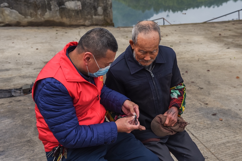 松溪公路分局志愿者正在為一位五保戶老人修剪指甲 葉國豪 攝 活動現場,志愿者們踐行雷鋒精神,把暖心服務送到群眾身邊,包括理頭發、推拿、修剪指甲,以及公路交通安全、移風易俗等政策宣傳。個別公路志愿者還驅車前往松溪官村,為兩位五保戶老人送去暖心服務。 “我覺得這個活動很有意義,在這里剪頭發的都是一些老人家,他們平常不方便剪頭發,這里就為他們提供了一個便利的場所。”參加活動的志愿者開心地說道。