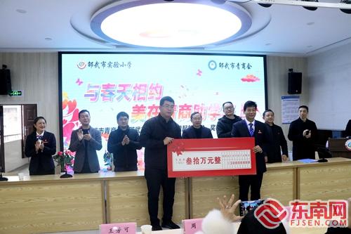邵武市實驗小學“立德起航獎學、獎教金”成立 東南網(wǎng)訊 3月11日上午,邵武市青年民營企業(yè)家商會與邵武市實驗小學“與春天相約,美在青商助學路上——立德起航獎學、獎教金”成立暨簽約儀式在邵武市實驗小學舉行。 簽約儀式上,邵武市青年民營企業(yè)家商會會長林德煌代表商會向?qū)W校捐贈30萬元“立德起航獎學、獎教金”,并表示:青商會的民營企業(yè)家們響應市委、市政府的號召,在專注自身發(fā)展的同時積極參與社會公益事業(yè);希望實小學子能善思樂學、健康成長,爭做回饋家鄉(xiāng)、回報社會的有用之才!