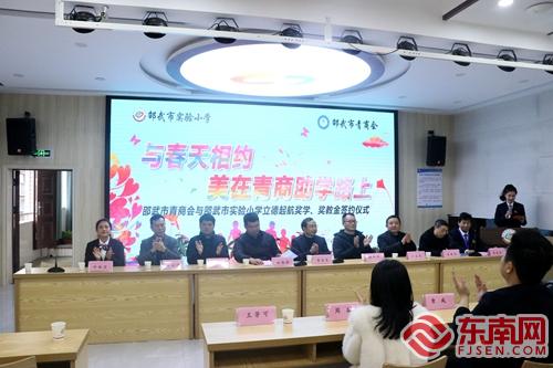邵武市實(shí)驗(yàn)小學(xué)“立德起航獎(jiǎng)學(xué)、獎(jiǎng)教金”成立 東南網(wǎng)訊 3月11日上午,邵武市青年民營(yíng)企業(yè)家商會(huì)與邵武市實(shí)驗(yàn)小學(xué)“與春天相約,美在青商助學(xué)路上——立德起航獎(jiǎng)學(xué)、獎(jiǎng)教金”成立暨簽約儀式在邵武市實(shí)驗(yàn)小學(xué)舉行。 簽約儀式上,邵武市青年民營(yíng)企業(yè)家商會(huì)會(huì)長(zhǎng)林德煌代表商會(huì)向?qū)W校捐贈(zèng)30萬(wàn)元“立德起航獎(jiǎng)學(xué)、獎(jiǎng)教金”,并表示:青商會(huì)的民營(yíng)企業(yè)家們響應(yīng)市委、市政府的號(hào)召,在專注自身發(fā)展的同時(shí)積極參與社會(huì)公益事業(yè);希望實(shí)小學(xué)子能善思樂(lè)學(xué)、健康成長(zhǎng),爭(zhēng)做回饋家鄉(xiāng)、回報(bào)社會(huì)的有用之才!