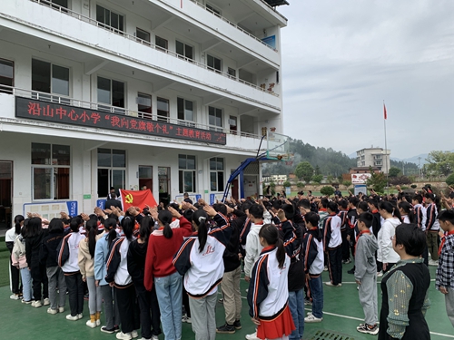 邵武沿山中心小學開展“我向黨旗敬個禮”主題教育活動 為迎接建黨100周年,引導學生堅定不移聽黨話、跟黨走,深情回顧黨的奮斗歷史,4月20日上午,邵武市沿山中心小學開展“我向黨旗敬個禮”主題教育活動。 當天上午課間操時間,伴隨著《沒有共產黨就沒有新中國》的紅色歌曲音樂響起,四位旗手護送黨旗出場,副校長吳德根向全體師生現場介紹了黨旗的形狀、來歷和意義。接著,少先隊大隊長傅思雨代表全體同學作了慷慨激昂的講話,表達了從小學黨史、永遠跟黨走的堅強決心。 隨后,校長何斌發表了“回眸黨史,感恩今天”的主題演講,勉勵孩子們在黨的關懷下好好學習,做新時代追夢人。之后,全體少先隊員面向黨旗三行隊禮,一敬為新中國的成立而獻出生命的革命先烈;二敬中國共產黨篳路藍縷、光輝偉大的百年歷程;三敬團結的中國人民萬眾一心,奮斗在復興強國的新征程上。 “我志愿加入中國共產黨,擁護黨的綱領……”活動現場,全體黨員教師在黨旗面前,在全體師生面前重溫了入黨誓詞,表達了學黨史、跟黨走、獻身農村教育事業的決心。全體學生面對黨旗心潮起伏,齊聲高呼,許下“從小學黨史,永遠跟黨走”的莊嚴承諾。 此次“我向黨旗敬個禮”主題教育活動,增進了師生愛黨愛國情感,營造了爭做奮發向上的新時代追夢人的良好氛圍。(邵武市沿山中心小學 徐慧宣) |