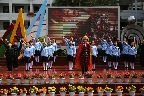 三年級古詩詞育讀表演 啟動儀式后,全市小學“書香校園、墨香校園”經(jīng)驗交流活動開始,與會人員在吳良洲校長、劉俊宏書記引領(lǐng)下觀摩全市“兩香”校園建設(shè)活動的展板、實驗小學五年級與新華書店聯(lián)誼好書推薦賣場,三年級詩詞吟誦、二年級親子閱讀、現(xiàn)場體驗朗讀亭、立德積分兌換機、矩墨學堂書法課。