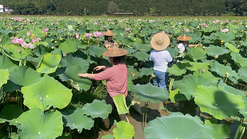 畬族村民采摘蓮蓬 陳浩粲 攝