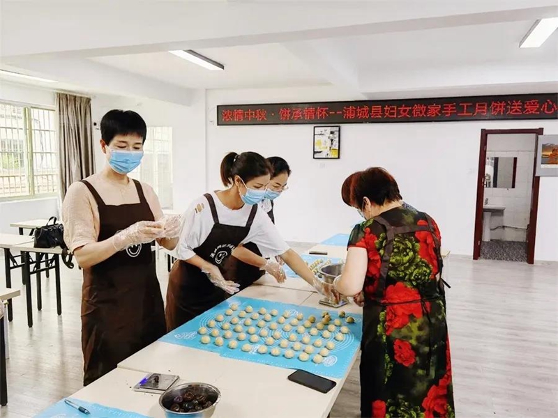 浦城縣婦聯組織“婦女微家”的微家長們制作愛心手工月餅 南平市婦聯供圖 關心關愛特殊群體 9月18日,浦城縣婦聯組織“婦女微家”的微家長們制作愛心手工月餅,走進縣福利院慰問孤、殘兒童,與他們共度中秋佳節。