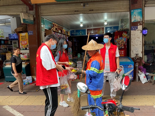 中國電信順昌分公司組織開展“為民辦實事 中秋送清涼”志愿服務活動 陳書鏗 攝 2021年9月21日中國電信順昌分公司組織開展“為民辦實事 中秋送清涼”志愿服務活動。 中國電信順昌分公司組織青年志愿者給中秋佳節仍辛苦堅守在工作崗位上的環衛工人送上菊花茶及月餅,為炎炎烈日下辛勤工作的勞動者們送上中秋節的慰問和祝福。 希望通過本次志愿服務活動讓環衛工人們感受到來自企業及社會的關懷,同時也呼吁廣大群眾珍惜環衛工人的勞動成果,把對他們的尊重和關愛轉化為日常保護環境的實際行動:做好垃圾分類、不隨手亂扔垃圾、提高環境保護意識。為加強做好疫情防控工作,建設綠色發展新福建貢獻力量。(鄒敬) |