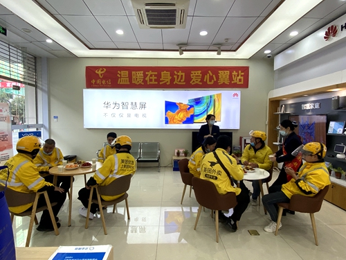 中國電信順昌分公司組織開展“愛心翼站?冬日送溫暖”活動 2021年11月30日,中國電信順昌分公司中山東路主營業廳組織開展“愛心翼站?冬日送溫暖”關愛外賣騎士愛心活動。 取餐、送餐,我們的身邊隨處可見外賣員疾馳的身影,他們風雨無阻地穿梭在大街小巷,正是他們的奔波忙碌、辛苦付出為我們的日常生活提供了更多的便利。無論刮風下雨、酷暑寒冬,中國電信順昌分公司“愛心翼站”隨時歡迎戶外工作者們進廳休息,喝杯水、歇歇腳,給手機充充電,讓愛駐足停留。 本次活動邀請了順昌美團外賣騎士到中山東路主營業廳“愛心翼站”,活動現場準備了茶水、甜點和水果,通過開展5G智能終端微課程及現場答題互動,宣傳5G及防詐知識?;顒咏Y束后,還為騎士們送上一份冬日暖心小禮物,讓他們感受到來自中國電信的關心和關愛。同時也呼吁更多的人能給予這些服務大家、穿梭在樓宇之間的“小蜜蜂”們多一分理解,多一分關愛,多一個微笑,多一聲感謝! 下階段,中國電信順昌分公司將堅持“用戶至上、用心服務”的服務理念,持續推動“愛心翼站”活動常態化,用實際行動踐行“為民辦實事”,踐行央企社會責任和使命擔當。(中國電信順昌分公司 鄒敬 圖/文) |