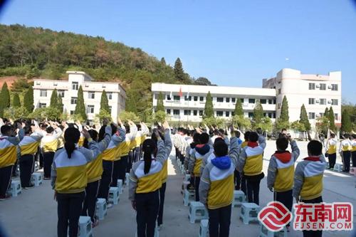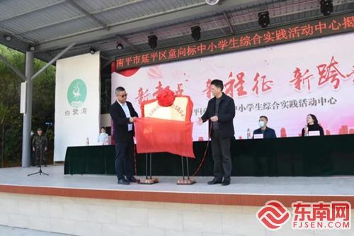 揭牌儀式 朱佳麗 攝 東南網(wǎng)訊 “綜合實(shí)踐活動(dòng)是校園生活的補(bǔ)充延伸,是一種更為廣闊的學(xué)習(xí),我們要充分利用這次活動(dòng),在另一片天地、另一個(gè)課堂增長(zhǎng)知識(shí)、鍛煉意志、豐富閱歷,同時(shí)培養(yǎng)集體主義、團(tuán)隊(duì)意識(shí)、合作精神以及自強(qiáng)自立的能力。”12月8日,延平區(qū)童向標(biāo)中小學(xué)生綜合實(shí)踐活動(dòng)中心揭牌儀式暨區(qū)實(shí)驗(yàn)小學(xué)五年段學(xué)生綜合實(shí)踐活動(dòng)開(kāi)營(yíng)儀式在爐下鎮(zhèn)舉行,區(qū)實(shí)驗(yàn)小學(xué)五年級(jí)學(xué)生代表在開(kāi)營(yíng)儀式上發(fā)言。 隨著“雙減”政策的落實(shí),綜合實(shí)踐教育成為素質(zhì)教育不可或缺的一塊內(nèi)容。延平區(qū)童向標(biāo)中小學(xué)生綜合實(shí)踐活動(dòng)中心的成立,標(biāo)志著延平區(qū)綜合實(shí)踐活動(dòng)中心實(shí)現(xiàn)“零”的突破。 上午9時(shí)40分,升旗儀式開(kāi)始。英姿颯爽的旗手邁著鏗鏘有力的步伐,護(hù)送國(guó)旗至升旗臺(tái)。當(dāng)嘹亮的國(guó)歌聲響起,鮮艷的五星紅旗在晨風(fēng)中冉冉升起,區(qū)實(shí)驗(yàn)小學(xué)五年段的學(xué)生們面向國(guó)旗、舉起右手行注目禮。隨后,到會(huì)的區(qū)委宣傳部、區(qū)教育局、活動(dòng)中心領(lǐng)導(dǎo)及嘉賓為活動(dòng)揭牌。
