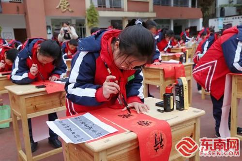 學生們在現場揮毫潑墨 松溪縣融媒體中心供圖 東南網訊 12月28日下午,松溪人民小學舉行第六屆迎春對聯書法大賽。 在比賽現場,學生們個個用心書寫,將身心融于筆端,揮毫潑墨書寫春聯,隨著筆鋒或抑或揚,一筆一劃,蒼勁有力,優美的書法對聯躍然紙上,盡其所能地展示自己的書法才能。 不一會兒,課桌上便擺起了學生們寫好的一副副對聯。“春至百花香滿地,時來萬事喜盈門”一副副春聯凝聚了學生滿滿的祝福和希望。“非常開心參加這次書法比賽,我感受到書法的樂趣,今后我會更加努力練習書法。”四年級(一)班學生劉依睿興奮地說道。 此次比賽共有100名學生參加,評選出一等獎15名、二等獎25名、三等獎30名。活動充分展示了學生們的書法學習成果,也讓他們體驗到了中華傳統書法文化的魅力,進一步推進“兩香”校園建設,營造歡樂祥和的春節氛圍。(吳琦欣 徐楓) |
