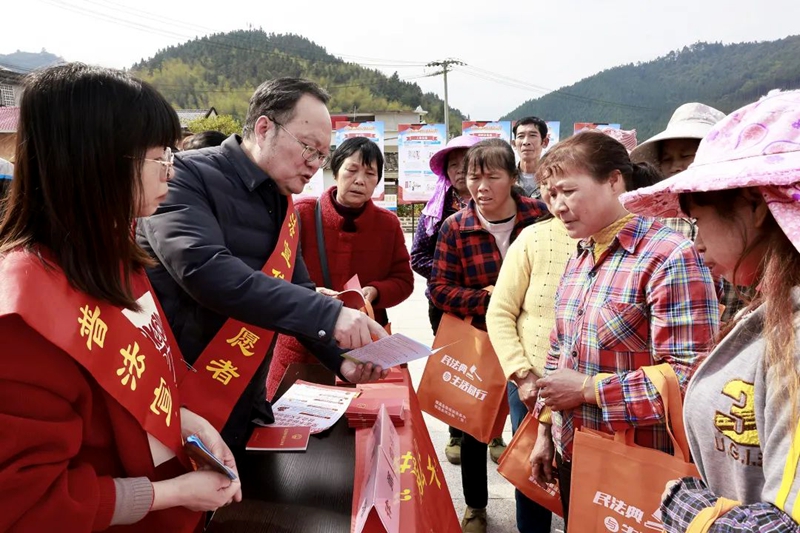 法律工作者為群眾講解法律知識(shí)。徐華山 攝 1月7日,由順昌縣新時(shí)代文明實(shí)踐中心、順昌縣委宣傳部聯(lián)合舉辦的順昌縣2022年“三下鄉(xiāng)”集中服務(wù)活動(dòng)啟動(dòng)儀式在鄭坊鎮(zhèn)鄭坊村和元坑鎮(zhèn)際下村舉行。縣委常委、宣傳部部長(zhǎng)陳光興出席啟動(dòng)儀式。順昌縣融媒體中心等24家單位參與活動(dòng)。