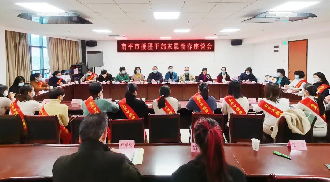 南平市援疆干部家屬新春座談會在潭召開 李群/攝 文明風1月19日訊(通訊員 嚴嵐)1月18日,南平市援疆干部家屬新春座談會在潭召開,會上揭曉18戶援疆“最美家庭”,成立南平市援疆“婦女微家”并授牌。 會議強調,開展援疆工作,是黨中央、國務院的重大戰略部署。各級婦聯要加強與援疆指揮部的聯系,繼續開展尋找援疆“最美家庭”活動,關愛援疆干部家庭,豐富援疆形式,在援疆工作中更好地發揮婦聯組織獨特作用;要加強與援疆“最美家庭”的聯系,及時了解援疆家庭遇到的困難和問題,幫助排憂解難;要加強與結對援疆“婦女微家”的聯系,在共聯共建中完善“婦女微家”建設,加強兩地文化交流與合作,助力文化潤疆。援疆“最美家庭”要繼續發揮榜樣力量,弘揚優良家風,厚植家國情懷,帶動全市廣大家庭積極踐行社會主義核心價值觀,形成愛黨愛國、相親相愛、向上向善的家庭文明新風尚。援疆“婦女微家”要通過開展微活動,提供微服務,匯聚力量,傳遞溫暖,激發全體援疆婦女干部干事創業熱情,與當地婦女組織積極互動,幫助協調解決婦女兒童“急難愁盼”問題。