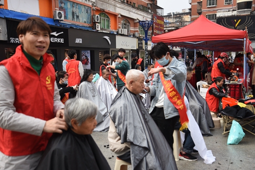 便民服務 黃志宏∕攝 便民服務 方便市民零距離 來自個體私營協會的志愿者個個身懷技藝,施展出自己的“十八般武藝”,為來到現場的市民群眾提供義務理發、電器維修、修匙配鎖、補鞋修傘等便民服務,一時間,個協的志愿服務點位被群眾圍得里三層外三層,大家在享受志愿者熱心周到服務的同時,紛紛給現場服務的志愿者點贊,并希望這種便民服務可以經常開展,以方便上了年紀的市民群眾,一上午服務群眾近百名。 村居服務 服務群眾點對點 區陽光志愿服務中心 “紅橙黃綠青藍紫”七支志愿隊和永安等社區的志愿者深入到社區、居民小區、福利院、志愿服務驛站、交通路口、閩江“母親河”源頭等場所,開展清潔家園、文明交通勸導、兒童教育、保護母親河、禁毒宣傳、敬老愛老等志愿服務。“向陽花文藝”、“青園手工坊”志愿隊的志愿者,走進將口敬老院,陪老人聊天、包水餃、做手工、表演太極扇、太極拳等陪老人們過一個有意義的“學雷鋒”日,敬老院里一位啞婆,是志愿者的救助對象,見到志愿者就像見到親人一樣,久久地握著志愿者的手不愿松開。(南平市建陽區委文明辦 黃志宏 梁智歡 鄭小燕) |