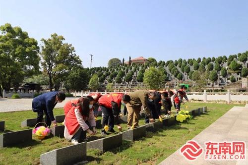 志愿者向先烈敬獻鮮花。張依婷 攝 東南網4月7日訊(通訊員 張依婷 江舜柏)又到清明日,思親正當時。4月4日上午,浦城縣民政局組織工作人員、志愿者來到儀叢山陵園舉行集體代祭掃活動。志愿者們神情肅穆,手持鮮花,佩戴口罩,以擦拭墓碑、敬獻鮮花、行鞠躬禮的形式,向長眠于此的先烈們表達敬意,向安葬在此的逝者致以哀思。 當前,全國疫情多點散發,浦城縣全面暫停現場祭掃活動?!拔覀兘拥讲簧偈忻竦淖稍冸娫?,還有一些身在外地的,問能不能到現場來祭掃。為滿足群眾的祭掃需求,我們開展代祭掃服務?!逼殖强h民政局局長陳大興介紹,需要在儀叢山陵園進行代祭掃的群眾可以通過撥打浦城縣殯儀館電話0599-2834039,0599-2822939進行預約,需要在各鄉鎮陵園代祭掃的群眾則可以撥打各鄉鎮的民政辦電話進行預約。 “我們全縣共有45處公墓,墓穴5萬個,這幾天全縣各陵園我們都有組織工作人員和志愿者進行代祭掃活動,截至目前,全縣已提供代祭掃服務1.3萬次。”浦城縣民政局社會事務股股長余振平介紹。 清明祭拜重于心、不拘于行?!拔覀兂珜V大市民改變傳統祭掃方式,播撒新時代文明新風,嚴格遵守疫情防控規定,爭做文明祭掃的示范者、革除陋習的先行者、移風易俗的推進者,用自己的實際行動帶動親屬、朋友和周圍群眾,摒棄陳規陋俗,抵制封建迷信,弘揚時代新風,用綠色、文明、健康的祭掃方式,傳遞對故人的思念?!标惔笈d說。 |