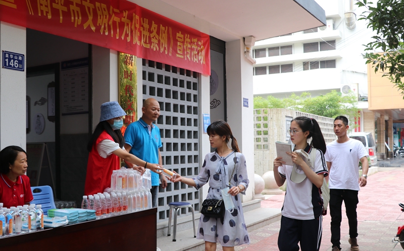 活動現(xiàn)場 浦城縣融媒體中心供圖 為進一步弘揚“奉獻、友愛、互助、進步”的志愿服務(wù)精神,充分發(fā)揮志愿服務(wù)作用,打通宣傳群眾、教育群眾、關(guān)心群眾、服務(wù)群眾的“最后一公里”,6月25日至6月27日,浦城縣新時代文明實踐中心、縣委文明辦、縣婦聯(lián)、縣教育局聯(lián)合開展“愛心助考 文明同行”新時代文明實踐志愿服務(wù)活動。 在浦城縣新時代文明實踐中心設(shè)立的中考服務(wù)點為考生和家長提供免費的礦泉水、口罩、文具及防暑藥品等物資,志愿者們給在門口等候的家長發(fā)放《南平市文明行為促進條例》宣傳單,引導(dǎo)家長及群眾參加《南平市文明行為促進條例》線上答題。同時,志愿者們還積極維護現(xiàn)場秩序,保持道路暢通,讓在外等候的家長不要大聲喧嘩,維護好考場周邊的秩序,為考生們創(chuàng)造了一個舒適而又安靜的考場外部環(huán)境。 據(jù)悉,此次志愿服務(wù)活動共發(fā)放3000多份《南平市文明行為促進條例》宣傳單,服務(wù)考生和家長5000余人(次),不僅愛心助力中考,還有助于提高群眾文明素養(yǎng),推動文明城市建設(shè)。(浦城縣委文明辦 沈立瑤) |