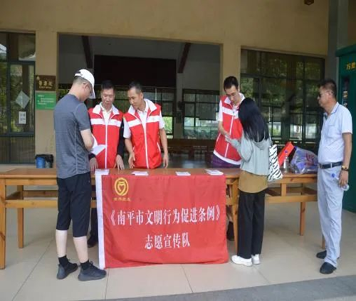 為深入宣傳《南平市文明行為促進條例》,6月29日,南平市委統戰部“同心”志愿者赴邵武市云靈山景區游客服務中心,開展文明旅游志愿服務進景區活動。