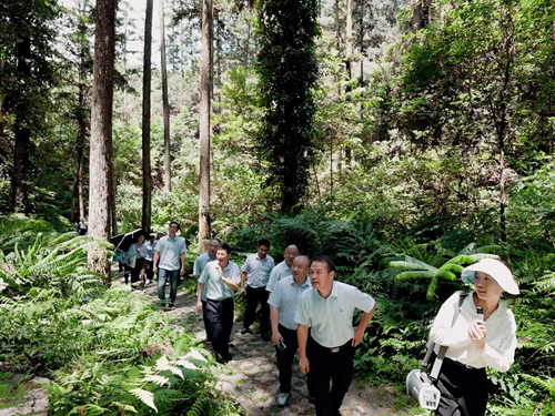 參觀溪后村百年杉木豐產林(陳浩 攝) 會上,各公司中心組成員代表圍繞“學習習近平總書記重要講話精神,貫徹落實集團公司、福建公司年中工作會議部署”開展交流研討,結合實際工作談心得、話打算、謀發展。 “綠色金庫” 感悟生態文明 延平區王臺被譽為“綠色金庫”,這里擁有揚名中外的杉木王和杉木豐產林。1958年,周恩來總理親筆簽署授予“綠色金庫”獎狀。1998年10月22日,習近平同志到溪后視察指導林業生產工作,察看了杉木王和杉木豐產林。 黨員們來到延平區綠色金庫示范基地,參觀了百年豐產林和170余年樹齡的杉木王。黨員們現場感悟“三庫+碳庫”的綠色生態理念,進一步領會“綠水青山就是金山銀山”發展理念的科學內涵。