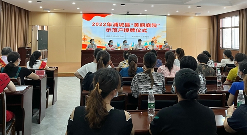 會(huì)議現(xiàn)場(chǎng) 浦城縣婦女聯(lián)合會(huì)供圖 為深入貫徹落實(shí)習(xí)近平總書記關(guān)于注重家庭家教家風(fēng)建設(shè)的重要論述,發(fā)揮婦女“半邊天”作用,結(jié)合“美麗庭院”創(chuàng)建活動(dòng)大力弘揚(yáng)良好家風(fēng),助力保持平穩(wěn)健康的經(jīng)濟(jì)環(huán)境、國(guó)泰民安的社會(huì)環(huán)境、風(fēng)清氣正的政治環(huán)境,為黨的二十大勝利召開營(yíng)造良好氛圍,8月19日,浦城縣舉辦2022年“美麗庭院”示范戶授牌儀式暨清廉家風(fēng)故事分享會(huì)。 近年來(lái),浦城縣堅(jiān)持以鄉(xiāng)村振興戰(zhàn)略為指導(dǎo),將“美麗庭院”創(chuàng)建與農(nóng)村人居環(huán)境整治有機(jī)結(jié)合,積極引導(dǎo)廣大村民以家庭為陣地,以庭院為載體,創(chuàng)建美麗庭院,以點(diǎn)帶面,努力改善農(nóng)村人居環(huán)境,助力鄉(xiāng)村振興。自2021年開展“美麗庭院”創(chuàng)建活動(dòng)以來(lái),全縣共評(píng)選各級(jí)“美麗庭院”407戶,其中市級(jí)159戶,省級(jí)86戶。