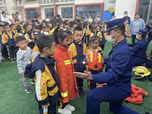 孩子們觀察消防帽 邵武市實驗幼兒園第一分園供圖 為進一步做好校園消防安全工作,提高廣大師幼的消防安全意識和自防自救能力,創造和諧、平安的校園環境,2022年11月7日,邵武市實驗幼兒園第一分園邀請邵武市水北消防救援站入園為孩子們送了上了一場“別開生面”的消防安全教育課。 活動中,消防指戰員結合生活實際,用通俗易懂、生動形象的語言,多角度、全方位為廣大師幼講解消防安全知識,并讓孩子們現場觀摩消防車、穿上消防服,近距離幫助孩子了解消防、學習消防。