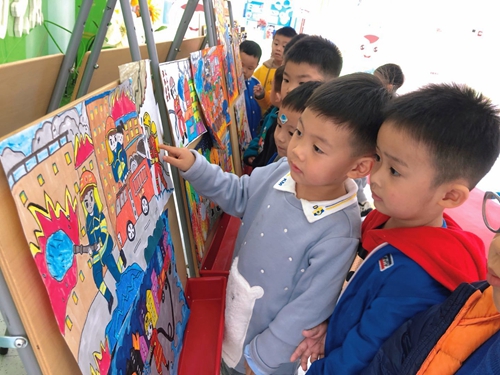 孩子們欣賞安全消防畫 邵武市實驗幼兒園第一分園供圖 隨后,消防指戰員模擬消防演練現場,組織師幼進行逃生疏散演練,對本次活動進行總結。整個活動,內容豐富,貼近實際,針對性、實用性強,孩子們除了近距離認識了消防叔叔和消防工具,還掌握了火災自救逃生的方法。 此次活動的開展不僅在小朋友的心中種下了“消防安全”的種子,也為營造良好的校園消防安全環境提供了有力保障,為筑牢校園消防安全“防火墻”打下了堅實基礎,真正達到了“教育一個孩子,帶動整個家庭,影響整個社會”的目的。(謝雨虹 林莉娟) |