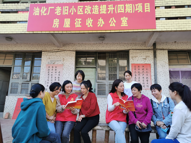 向征遷對象宣講 葉影 攝 “‘人民’是貫穿二十大報告的主線,我們要實現(xiàn)好、維護好、發(fā)展好最廣大人民的根本利益,在發(fā)展中改善和保障民生……”寶山社區(qū)婦聯(lián)主席周曉丹在油化廠征遷組辦公場所周圍向征遷干部、過往群眾宣講黨的二十大精神,通過讀原文、講事例、互動問答等形式,在輕松活躍的氛圍中讓大家對黨的二十大主題和概況有了更深刻的理解。 紅領(lǐng)“巾”志愿服務(wù)隊還走進征遷對象家中“面對面”宣講,與居民拉家常、噓冷暖、訪民情、解民憂,共同展望征遷片區(qū)未來建設(shè)的美好圖景,將黨的二十大精神送進尋常百姓家。(南平市建陽區(qū)委文明辦 張靈暄)
