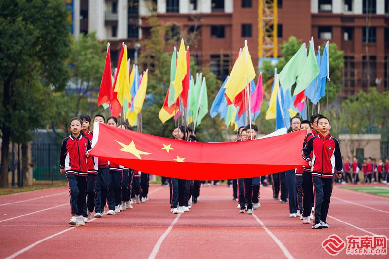 南平實驗小學武夷校區召開第四屆體育節暨第四屆田徑(趣味)運動會,以此獨特的方式喜迎省運會。林茜/攝 11月24日,在第十七屆省運會即將開幕之際,南平實驗小學武夷校區召開以“省運傳遞夢想 運動成就健康”為主題的第四屆體育節暨第四屆田徑(趣味)運動會,以此獨特的方式喜迎省運會。 開幕式上,孩子們滿懷喜悅與激情,伴隨著雄壯的運動員進行曲依次進場,展示精彩、獨特的入場表演,為全校師生帶來了異彩紛呈的視覺盛宴。