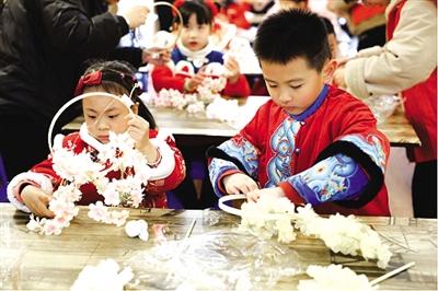 2月3日,由順昌縣新時代文明實踐中心、縣委宣傳部、縣文旅局、縣文化館共同舉辦“玉兔迎福”——順昌非遺手工燈籠制作活動。圖為小朋友在組裝燈籠。 (徐華山 潘琳 邱詩雨 攝)