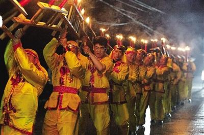 2月4日,武夷山興田鎮(zhèn)楓坡村村民揮舞燭橋穿街走巷。 (新華社發(fā) 陳穎 攝)