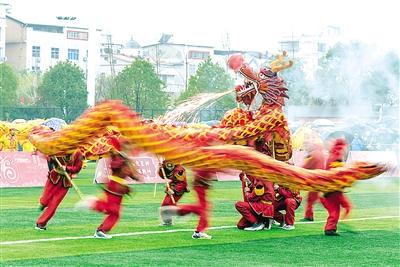 2月4日,浦城縣舉行“福兔呈祥·福滿乾坤·龍舞浦城”元宵舞龍展演活動,10個鄉(xiāng)鎮(zhèn)(街道)的舞龍隊伍分別從該縣五個具有當(dāng)?shù)靥厣奈幕貥?biāo)同時出發(fā), 沿街巡游至永暉體育中心展演,烘托出喜慶熱烈的節(jié)日氛圍。 (張依婷 柯聰 鄭蔚武 攝)