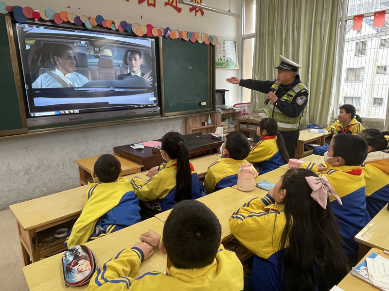 宣傳民警通過開辟交通安全課堂、播放主題警示教育片、發(fā)放宣傳材料等多種形式開展宣傳活動(dòng) 陳媛/攝 隨著元宵節(jié)后各中小學(xué)寒假結(jié)束,南平市公安局交警支隊(duì)建陽(yáng)大隊(duì)即時(shí)啟動(dòng)“護(hù)學(xué)”模式,全力做好開學(xué)季道路交通安全管理工作,送出兩份平安大禮。 第一份大禮是開展安全教育,提升安全意識(shí)。大隊(duì)會(huì)同教育局、學(xué)校,組織警力深入學(xué)校聯(lián)動(dòng)開展“開學(xué)第一課”交通安全主題宣傳活動(dòng)。期間,宣傳民警通過開辟交通安全課堂、播放主題警示教育片、發(fā)放宣傳材料等多種形式開展宣傳活動(dòng),鼓勵(lì)同學(xué)們爭(zhēng)當(dāng)交通志愿者等方式,傳達(dá)交通安全知識(shí),引導(dǎo)在校學(xué)生“知危險(xiǎn),懂避險(xiǎn)”理念培養(yǎng)。同時(shí)借助微信、微博等新媒體發(fā)布開學(xué)季出行提示,引導(dǎo)廣大交通參與者合理規(guī)劃出行時(shí)間及路線。還依托“護(hù)學(xué)崗”,向?qū)W生家長(zhǎng)發(fā)放宣傳資料,面對(duì)面講解提示遵章守法,最大限度擴(kuò)大宣傳覆蓋面和影響力,共建學(xué)校周邊良好的行車秩序及通行環(huán)境。