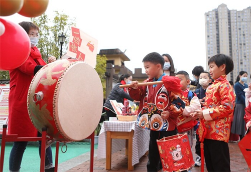南平市建陽區實驗幼兒園開展擊鼓體驗活動 劉蕊 攝 幼兒園為孩子們準備富有中國傳統文化韻味的入園儀式,通過送“福”、擊鼓鳴志,為孩子們送上真摯的祝福。教師們組織孩子們開展舞龍、寫“福”字、剪窗花、制作糖葫蘆、兔年書簽等豐富多彩的民俗體驗活動,讓孩子們在歡樂的氛圍中體驗民俗風情,感受傳統文化的深厚底蘊。(南平市建陽區委文明辦 梁佳鶴 劉蕊) |