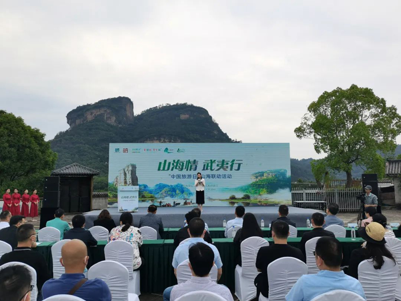 2022年5月19日,“山海情,武夷行”“中國旅游日”山海聯動活動在武夷山茶博園舉辦。南平市委文明辦供圖 精準優化服務,濃厚創建氛圍 “五一”勞動節期間,考亭書院舉行的一場“文明旅游 禮行天下”宣傳活動,吸引線上線下近千名游客參加,讓不少游客感受到南平的熱情好客。近年來,市、縣兩級文旅部門帶頭組織機關干部及下屬事業單位工作人員,聯合各類文明旅游示范單位在寒暑假期、春節國慶等重要節假日旅游旺季,開展“‘罩’顧你我 新春送暖”“倡導文明旅游 服務八方游客”“守護環境 文明你我他”等不同主題的線下文明旅游志愿服務活動累計39場次,并幫助各類文明旅游示范單位聯合婦聯、團委、社區街道等其他部門開展文明旅游或黨員支部共建活動。市里還建立了文明旅游督導員制度和游客文明行為獎勵制度,設立固定的文明旅游志愿服務驛站6個,建立文明旅游宣傳志愿服務隊伍11支,定期組織開展文明旅游提示、提醒、勸導志愿服務活動。此外,全市“線上線下”文明旅游宣傳形式多樣。線上,南平廣播電視臺、閩北日報、大武夷新聞網等媒體定期刊播文明旅游公益廣告;線下,各創建單位在景區入口、游客服務中心、景區公共交通工具、旅游者集中場所顯著位置設置文明旅游標語牌,并在講解詞中加入文明旅游相關內容,營造“文明旅游 人人有責”的良好氛圍。