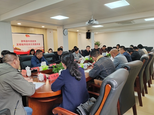 政和縣考察組與邵武市開展創城座談交流。聶婷婷 攝 3月3日,政和縣委常委、宣傳部部長盧亨強率文明辦、城管局、交警大隊等一行13人蒞臨邵武市開展文明城市創建工作考察交流活動。