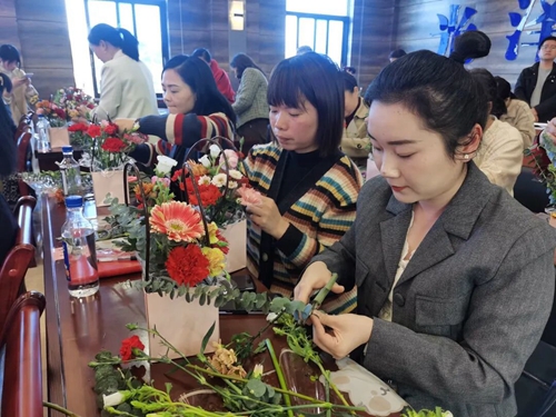 插花演示 李淑芬 攝 講座結(jié)束后,還邀請(qǐng)花藝?yán)蠋煘閶D女同胞講授花藝知識(shí)并進(jìn)行插花演示。在花藝?yán)蠋煹闹笇?dǎo)和示范下,大家將修剪好的花束插入花籃中,制作出了一籃籃形態(tài)各異、象征著美好祝福的插花作品。此次活動(dòng)不僅陶冶了大家的情操,豐富了文化生活,更為營(yíng)造溫馨和諧的家庭氛圍起到了積極的作用。(林思齊 丁麗娟) |