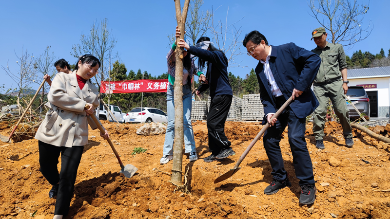 系列活動期間,漫山的“志愿紅”帶來“生態(tài)綠”,助力生態(tài)文明發(fā)展 南平市林業(yè)局供圖 在中國第45個植樹節(jié)來臨之際,南平市林業(yè)局持續(xù)深入貫徹落實黨的二十大精神,按照“深學爭優(yōu)、敢為爭先、實干爭效”行動要求,奮勇爭當生態(tài)文明“優(yōu)等生”,組織廣大市民群眾開展“與林有約·生態(tài)文明”系列主題義務植樹活動,為南平市推動“好風景”走向“好經(jīng)濟”邁向“好生活”貢獻林業(yè)力量。 3月10日,南平市林業(yè)局聯(lián)合建甌市林業(yè)局、建甌市婦聯(lián)前往建甌市吉陽鎮(zhèn)玉溪村開展“巾幗有約·生態(tài)文明”主題義務植樹活動。參觀學習玉溪婦女耕山隊展覽館,并在吉陽鎮(zhèn)玉溪婦女耕山隊基地開展“林業(yè)巾幗心向黨,團結奮進新征程”義務植樹活動,20余名婦女干部職工用雙手建設“巾幗林”,共同種下閩楠、桂花、黃玉蘭等苗木200余棵。 當日,南平市林業(yè)局、南平團市委、南平市農(nóng)業(yè)學校聯(lián)合開展“青年有約·生態(tài)文明”2023年南平市直團組織(青工委)主題植樹節(jié)活動,組織了來自全市25家市直機關、企事業(yè)單位、金融機構等青年志愿者們共同種植楠木、櫻花、羅漢松等苗木70余棵。