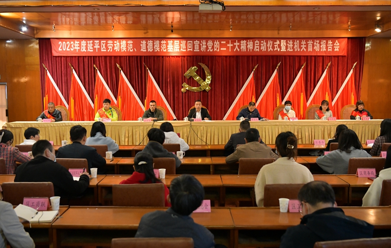 2023年度延平區(qū)勞動(dòng)模范、道德模范基層巡回宣講黨的二十大精神啟動(dòng)儀式暨進(jìn)機(jī)關(guān)首場報(bào)告會(huì) 3月14日上午,延平區(qū)新時(shí)代文明實(shí)踐中心、區(qū)委文明辦、區(qū)總工會(huì)聯(lián)合舉辦2023年度延平區(qū)勞動(dòng)模范、道德模范基層巡回宣講黨的二十大精神啟動(dòng)儀式暨進(jìn)機(jī)關(guān)首場報(bào)告會(huì),特別邀請(qǐng)五位勞動(dòng)模范、道德模范、身邊好人,結(jié)合自己學(xué)習(xí)黨的二十大精神的心得,講述工作、生活中的感悟。延平區(qū)文明委副主任、區(qū)政協(xié)副主席黃志紅參加并講話,區(qū)委文明辦、區(qū)總工會(huì)以及各級(jí)文明單位、基層工會(huì)代表參加此次報(bào)告會(huì)。 宣講會(huì)指出,各級(jí)文明單位、基層工會(huì)要深入貫徹落實(shí)黨的二十大精神,推動(dòng)實(shí)施省委“深學(xué)爭優(yōu)、敢為爭先、實(shí)干爭效”行動(dòng),堅(jiān)定不移推動(dòng)“好風(fēng)景”走向“好經(jīng)濟(jì)”、邁向“好生活”,充分發(fā)揮先模人物的引領(lǐng)和帶動(dòng)作用,為文明城市創(chuàng)建,推進(jìn)延平“二次創(chuàng)業(yè)”,奮力打造福州都市圈門戶城市,提供豐潤的道德滋養(yǎng)和強(qiáng)大精神力量。