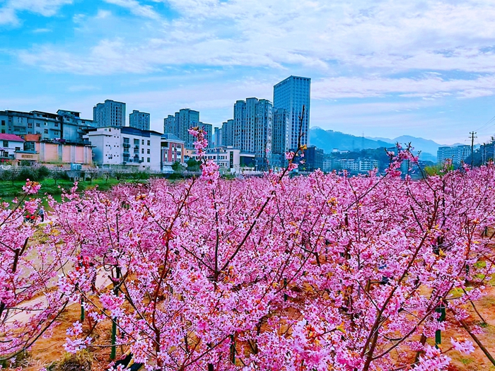 政和城區渡頭洋櫻花盛開。曾大龍 攝 花化彩化美起來 前不久,政和城區渡頭洋河畔小公園500多株櫻花競相開放,吸引不少市民來此賞花拍照,一夜之間這里成為“網紅打卡地”。這是繼2022年春節塔山公園七彩游步道成為“網紅打卡地”之后,政和給群眾帶來的又一個驚喜。 “這里曾經亂石成堆,到處是垃圾,夏天臭氣熏天、蚊蟲很多?!奔易「浇膹埾壬f,后來在政府的支持下,修建了河邊棧道,建設了河濱公園,年前種植了這些櫻花,家門口成了花園。 這是政和縣城市管理局實施規模化花化彩化,扮靚城市的一個縮影。 “去年,我們引進了福建省春天生態科技股份有限公司,對城區約50萬平方米的園林綠化實行市場化運營管護,園林綠化管護水平得到大幅提升。”政和縣城市管理局園林服務中心負責人魏勇說。 近年來,政和縣城市管理局圍繞建設宜居美麗的園林城市目標,對城區實施全域規?;ɑ⒉驶脑焯嵘?,構建以主城區花化、彩化為核心的規?;ɑ?、彩化體系,對城市周邊、高速和鐵路入城口、三溪六岸、城區重要路段、主要公園、A級景區、轄區內鄉村振興示范帶等區域實施規?;ɑ?、彩化,主要種植黃山欒樹、銀杏、桂花、紅楓、紅火箭紫薇、月季、櫻花、桃花等樹種。 “我們組織工人清除園林雜草,對不同綠化樹木進行修剪、造型。春節期間,在市民廣場、政府廣場、高速口擺放各色花卉,營造春節喜慶氛圍,不少地方成為市民的打卡點?!?福建省春天生態科技股份有限公司負責人范開松介紹,下一步,公司將按規?;ɑ驶囊螅制N植不同品種的花卉,逐步實現一年四季都有花。