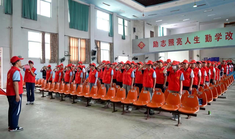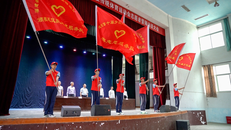 福建省第十屆少數(shù)民族傳統(tǒng)體育運動會志愿者誓師動員大會舉行 方詩琦 攝 “我宣誓,我志愿參加福建省第十屆少數(shù)民族傳統(tǒng)體育運動會志愿服務,使命重大,任務光榮,我將做到聽從指揮,服務大局,全力以赴,團結協(xié)作,弘揚全省民族運動會精神,踐行志愿服務理念,為南平爭光……”22日,福建省第十屆少數(shù)民族傳統(tǒng)體育運動會志愿者誓師動員大會在南平市武夷旅游商貿(mào)學校舉行。
