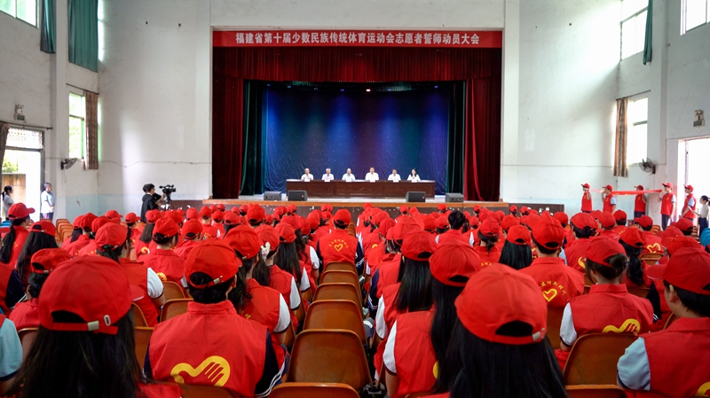 22日,福建省第十屆少數(shù)民族傳統(tǒng)體育運動會志愿者誓師動員大會在南平市武夷旅游商貿(mào)學校舉行。 |