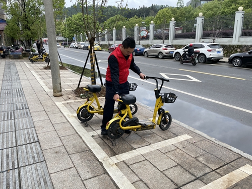 志愿者有序指揮過往的行人和車輛交通 走斑馬線,讓小朋友回家路上的笑容多一分 在學校放學后,道路兩旁的都是小朋友們的身影,大概是馬路不寬、意識不強,不少小朋友為了圖一時方便,忽略了平時交通安全的要求,從馬路上橫穿而過。志愿者馬上在斑馬線兩側有序組織小朋友們集合排隊,提示過往車輛提前減速讓行,帶領小朋友有序從斑馬線上過馬路,并勸導小朋友們以后過馬路要從斑馬線上有序走過。在志愿者的引導下,小朋友們回家路上的安全感增加了,臉上洋溢的笑容也多增加了一分。 規范停車,讓文明城市的靚麗景色多一些 為了規范非機動車的停放,建陽區在道路兩旁的人行道上規劃了非機動車的專用停車位,讓車輛停放更加便捷、美觀。志愿者們將部分停放不規范、不到位的共享單車、電動車,都轉移到專用停車位上有序停放,并將一些共享單車的故障損壞情況與運營公司聯系,方便運營公司維修更換,讓廣大市民出行更加便利。