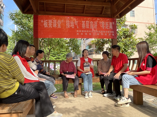 宣講現場 吳家塘鎮供圖 一口鄉音、一片空地、幾張板凳……宣講員與村民們圍坐一起,連日來,邵武市吳家塘鎮“小板凳”宣講隊走村入戶,以接地氣、冒熱氣、聚人氣的方式,面對面宣講,讓黨的二十大精神深入人心。 宣講過程中,“小板凳”宣講隊成員身穿紅色馬甲,手拿宣講材料,與村民們圍坐在一起,以“拉家常”的形式,解讀著黨的二十大報告里與老百姓息息相關的惠農政策等內容,用邵武話把“書面語”變成“家常話”,讓村民聽得懂、記得住。大伙你一言,我一語,紛紛為現在的美好生活點贊。 群眾在哪里,就要將黨的聲音傳遞到哪里。下一步,吳家塘鎮將充分發揮“頭雁效應”,堅持“土專家講大道理”,組織“小板凳”宣講隊成員緊扣鄉村振興實際,開展形式多樣的接地氣、聚民心的微宣講活動,變“請入課堂”為“走進群眾”,讓黨的創新理論“飛入尋常百姓家”。(吳家塘鎮 楊永輝) |