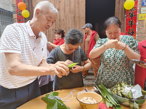 包粽子比賽現(xiàn)場(chǎng) 為了弘揚(yáng)民族精神,繼承中華傳統(tǒng),增進(jìn)居民之間的溝通和交流,營(yíng)造文明和諧、團(tuán)結(jié)奮進(jìn)的文化氛圍,6月13日下午,北門(mén)社區(qū)聯(lián)合邵武市圖書(shū)館、邵武市一家親志愿服務(wù)隊(duì)聯(lián)合舉辦“弘揚(yáng)端午文化 傳我濃情粽香”主題包粽子比賽。 當(dāng)天,樵溪樓前聚集了不少前來(lái)參加包粽子比賽的居民以及觀(guān)看的老人,桌子上擺滿(mǎn)了社區(qū)精心準(zhǔn)備的粽葉、糯米、五花肉。本次比賽共有20組居民自愿報(bào)名參加,隨著一聲哨響,報(bào)名參賽的居民們熟練地開(kāi)始將兩片粽葉平鋪錯(cuò)開(kāi),折粽葉、鋪糯米、放餡料,然后把粽葉對(duì)折包裹成四角的形狀,最后用棉線(xiàn)扎緊,一個(gè)個(gè)飽滿(mǎn)漂亮的四角長(zhǎng)粽就完成了。只見(jiàn)包粽子能手們不慌不忙、經(jīng)驗(yàn)老到,紛紛拿出自己的“看家本領(lǐng)”,吸引了眾多居民觀(guān)戰(zhàn),大家你一言我一語(yǔ)交流包粽子技巧,整個(gè)活動(dòng)現(xiàn)場(chǎng)歡聲笑語(yǔ)、其樂(lè)融融。“我覺(jué)得這次活動(dòng)特別有意思,不僅學(xué)到了包粽子技巧而且還有豐厚的獎(jiǎng)品拿,增進(jìn)了大家之間的感情。”有居民說(shuō)道。 經(jīng)過(guò)激烈的比拼,最終決出一等獎(jiǎng)1名,二等獎(jiǎng)3名,三等獎(jiǎng)4名及參與獎(jiǎng)11名。 歲歲年年奉歡宴,言言語(yǔ)語(yǔ)端午情。活動(dòng)結(jié)束之后,社區(qū)還對(duì)轄區(qū)內(nèi)高齡老人進(jìn)行了慰問(wèn),為老人們送上滿(mǎn)載祝福的粽子。對(duì)于行動(dòng)不便不能到現(xiàn)場(chǎng)來(lái)領(lǐng)取的,工作人員還特意上門(mén)將粽子送到了老人手中,并詢(xún)問(wèn)了他們的近期生活與身體狀況等,關(guān)心了解他們的實(shí)際需求,在端午節(jié)即將到來(lái)之際,傳遞濃濃祝福,讓他們真切感受到社區(qū)大家庭的溫暖。 通過(guò)本次活動(dòng)增進(jìn)鄰里之間的感情,增強(qiáng)社區(qū)的凝聚力,聚力營(yíng)造一個(gè)和諧友善的社區(qū)大家庭。(邵武市通泰街道北門(mén)社區(qū) 圖/文 陳熊) |