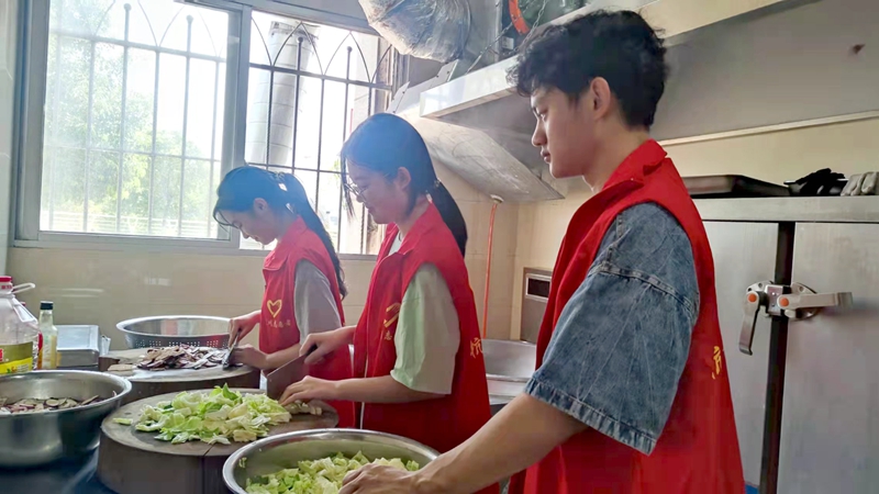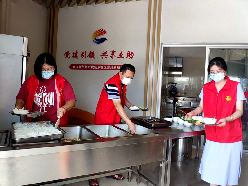 長者食堂志愿者忙碌的身影 杭川鎮供圖 “長者食堂自開辦以來,就受到居民的歡迎,每天都有30多名老人在食堂就餐,現在已有79位老人辦理了就餐卡。”橘子洲社區黨委書記丁婉清說,“今年經過改造提升后,增設了便民服務區,為轄區老人提供十余項便民服務,還增加了文娛休息區和閱讀區等,這里正成為社區老人的‘幸福驛站’。” 辦好長者食堂,讓越來越多的老人愿意走出“小家”,走進“大家”。緊鄰長者食堂的紅色共享餐廳,則匯聚著社會各界的愛心,并將其傳遞出去。 “相較于長者食堂收取一定費用,紅色共享餐廳完全免費。除法定節假日以外全年無休,用餐時間為每天9時30分到13時30分,每餐供應三個素菜和一份高蛋白的菜湯。全縣低保戶、殘疾人士、留守兒童,以及需要守望相助的人員都可以到這里免費用餐。”丁婉清介紹。 紅色共享餐廳內的一桌一椅、餐具設備等都是愛心人士、愛心企業捐助的,甚至連“共享食堂”的食客也會獻上一份愛心。“我們精準用好捐贈錢物,讓每位捐贈者都感到愛心受到了尊重、錢物得到了珍惜。”丁婉清說。