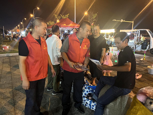 義警隊夜間在火車站巡邏 范彌翔/攝 同時,義警還向來往旅客、接站人員,以及游玩的游客和街邊商家發放反詐防騙宣傳單,現場講解并指導群眾下載“國家反詐中心”APP,進一步擴大防詐宣傳覆蓋面,全面提升廣大群眾的防詐意識。 火熱夏夜,守護平安“不打烊”。“‘河東義警’來自于群眾,服務于群眾,穿上‘湛盧義警’的紅馬甲的那一刻起,心中頓時就多了一份責任與擔當,即使在火熱夏日,能夠做好人民群眾的站崗人、守夜人,是一件非常值得自豪的事。” 義警陳劍寶說道。 河東派出所自夏季治安打擊整治行動開展以來,在夏夜治安巡邏、安全防范宣傳和轄區安全監督方面發揮了不可替代的作用。下一步,河東鄉新時代文明實踐所將繼續聯合鄉派出所招募吸收更多的志愿者加入“義警”這一隊伍來,“義”起守護平安松溪,全力維護轄區治安穩定。(松溪縣委文明辦供圖 范彌翔) |