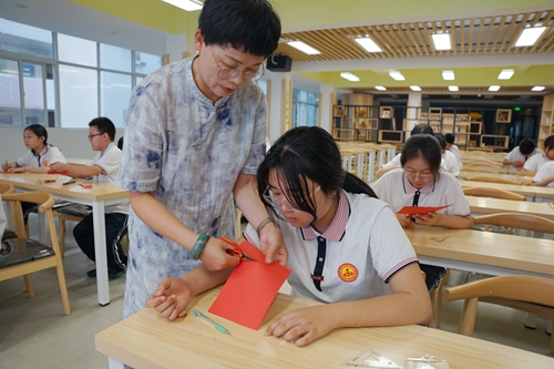國家非遺浦城剪紙省級非遺傳承人張薇正在給學生授課 浦城縣融媒體中心供圖 在另外一棟教學樓的浦城民間剪紙課上,同學們正在為即將完成手中的作品而高興。“看著老師不停旋轉著剪刀,一幅幅精美的作品躍然紙上,就特別想學。”“逢年過節,看到各種花樣的剪紙就很喜歡,現在學會了,以后家里的窗花和福字就可以自己來創作啦!”課堂上,同學們拿著手中的作品,格外開心。 浦城民間剪紙已有一千多年的歷史,廣泛地應用在百姓生活中,以表達吉祥美好的寓意。2014年,剪紙(浦城剪紙)被列入國家級非物質文化遺產代表性項目名錄擴展項目名錄。
